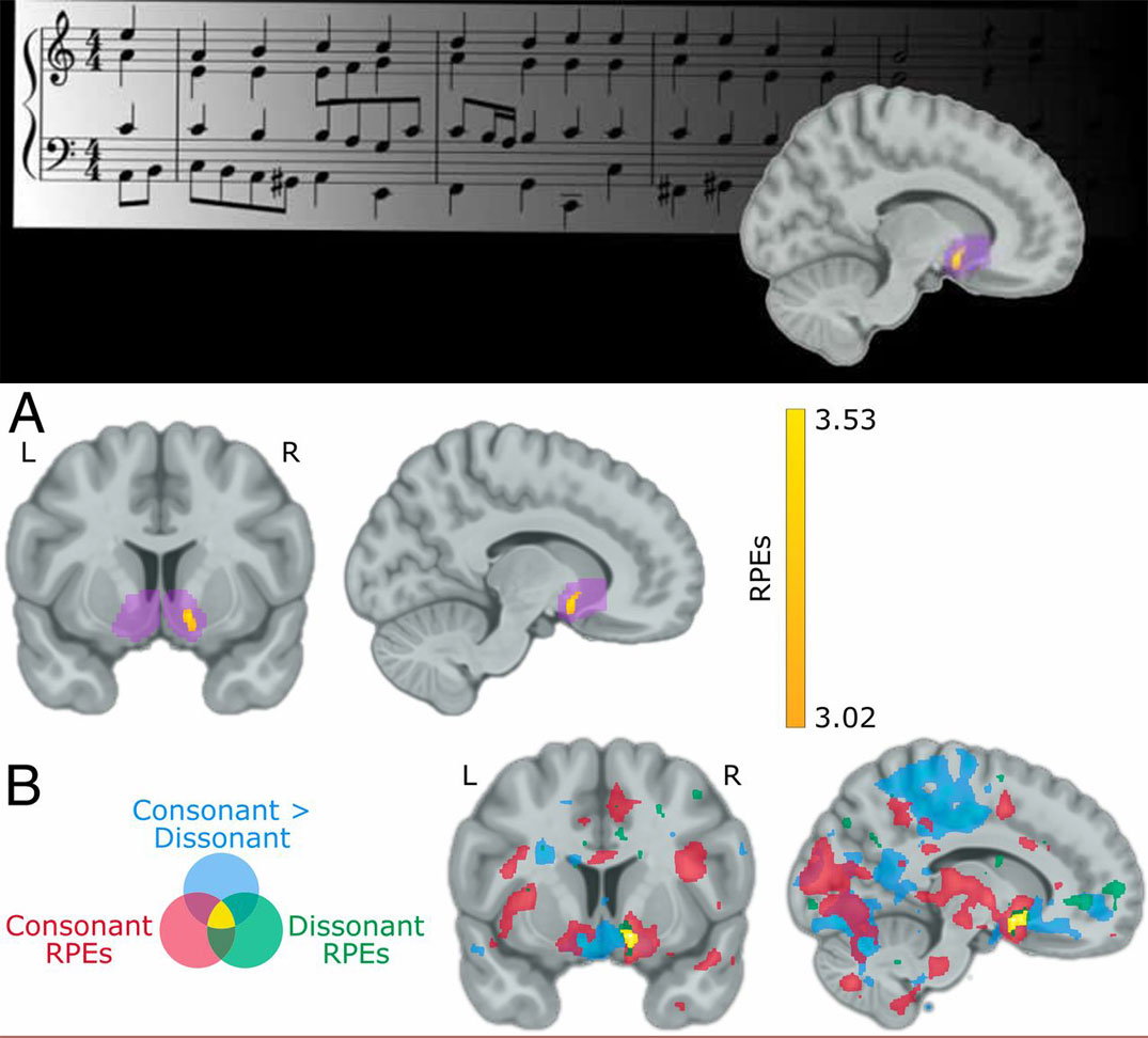 If you love it when a musician strikes that unexpected but perfect chord, you are not alone. New research shows the musically unexpected activates the reward centre of our brains, and makes us learn about the music as we listen. Researchers at McGill University put 20 volunteers through a musical reward learning task. Each participant chose a colour, then a direction. Continue @ Neuroscience News here or read the original paper here. Gold, Benjamin P., et al. Musical reward prediction errors engage the nucleus accumbens and motivate learning. Proceedings of the National Academy of Sciences Feb 2019.